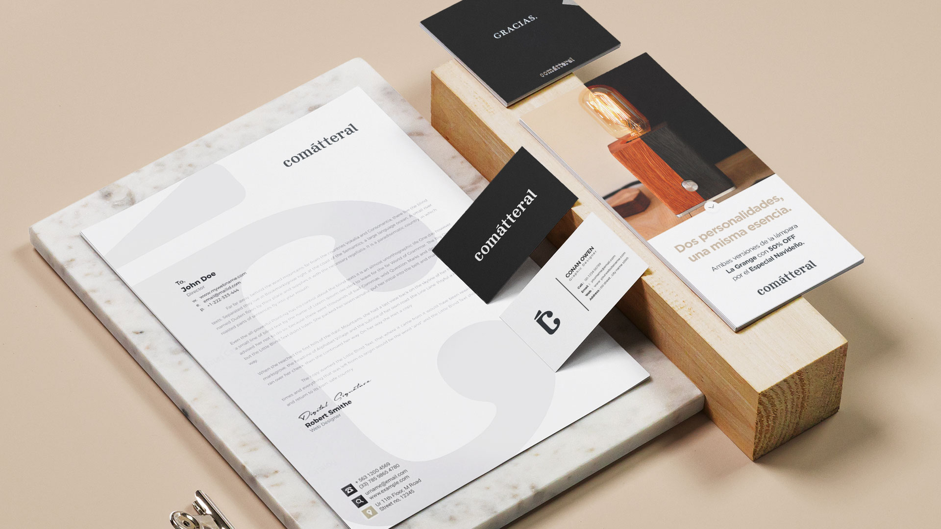 We designed a refined and tactile identity for Comatteral, a studio where material quality meets thoughtful design. The system bridges digital elegance and artisanal authenticity, with applications across web, packaging and physical product experiences.