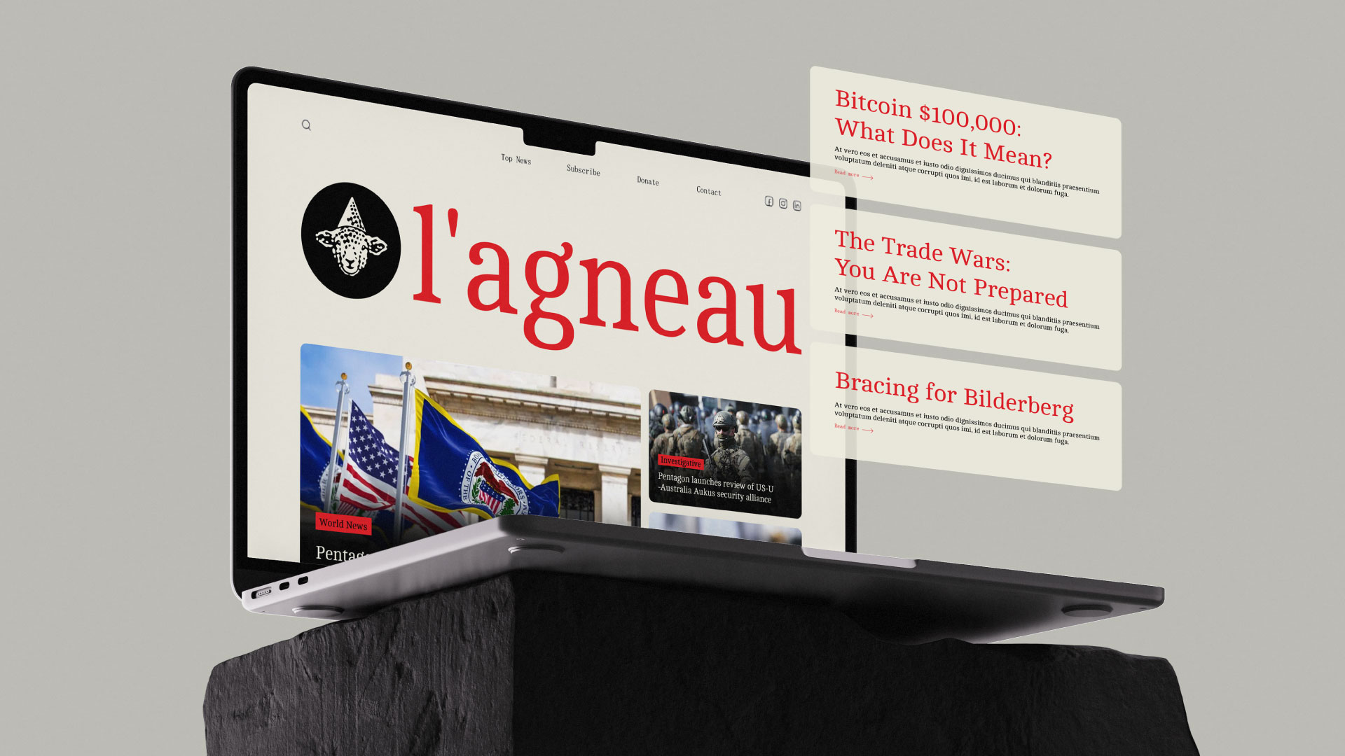 We crafted a stark and rebellious brand system for l’agneau, a media platform that challenges mainstream narratives through investigative journalism and open source publishing. The identity balances urgency with clarity across digital, editorial and social formats.
